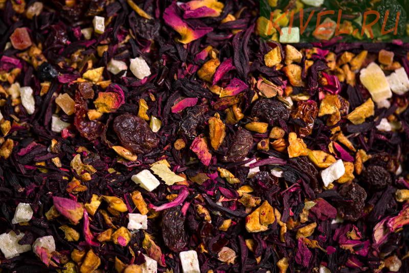 Оригинальное вкусовое сочетание каркадэ, кусочков яблок и ананаса, красного изюма, лепестков красной розы и кусочков клубники творит чудеса, наполняя душу воодушевлением и спокойствием.
