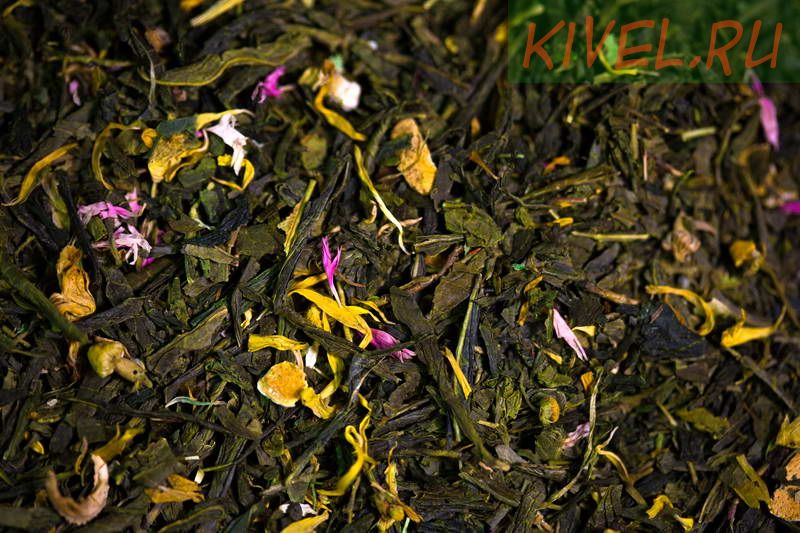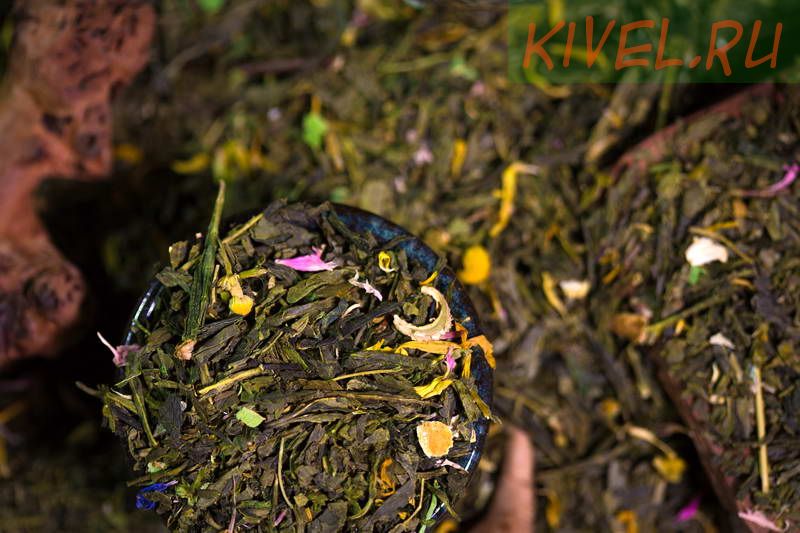 Зеленый китайский чай Сенча, цветки липы, корочки апельсина, ромашка, лепестки календулы, василька.